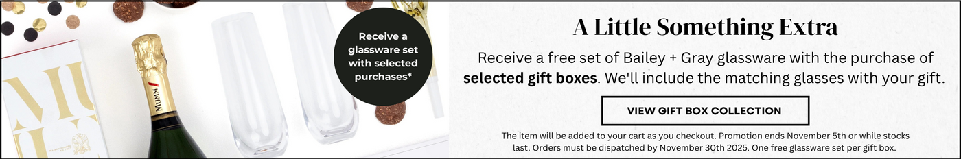 Products are presented in our signature modern packaging - custom-made black gift boxes finished with beautiful ribbon to form a stylish and contemporary gift (with no cane baskets or cellophane in sight).