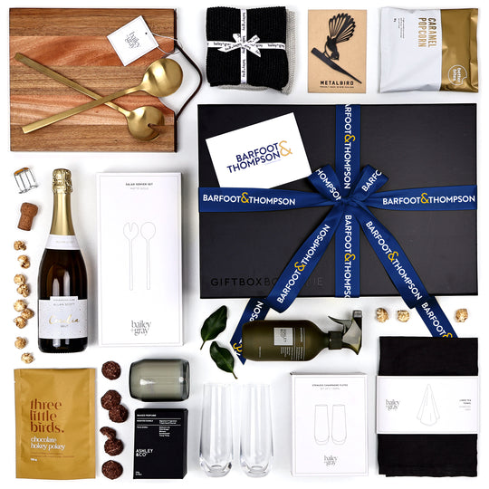 Products are presented in our signature modern packaging - custom-made black gift boxes finished with beautiful ribbon to form a stylish and contemporary gift (with no cane baskets or cellophane in sight).