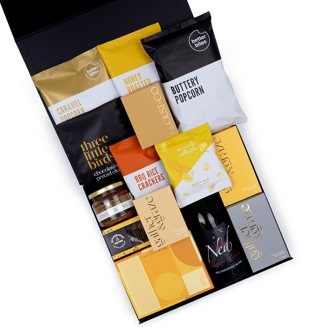 For the host with the most, The Entertainer gift box is filled with everything needed to impress guests or enjoy a night in with style. From crisp Sauvignon Blanc and artisan relishes to crunchy nibbles and decadent sweets, this is a true crowd-pleaser—perfect for sharing, gifting, or celebrating any occasion.