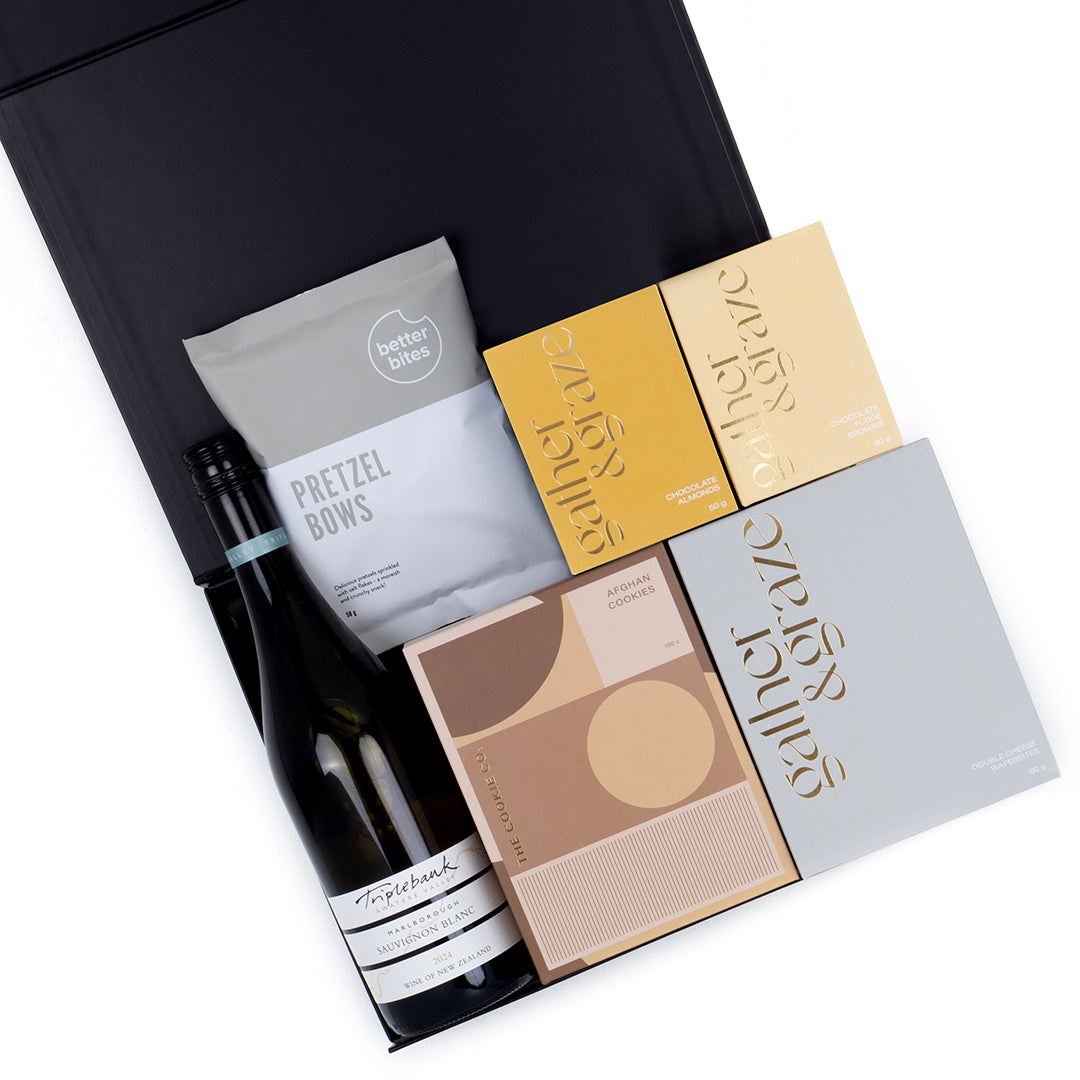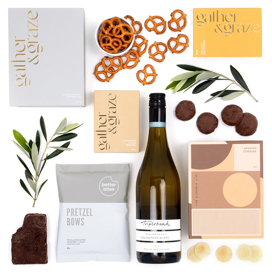 Say cheers to another year with The Happy Birthday gift box—a thoughtful mix of wine, chocolate and gourmet bites that’s guaranteed to make their day. With a crisp Sauvignon Blanc, indulgent sweet treats, and crunchy savoury nibbles, this is a birthday gift worth toasting.