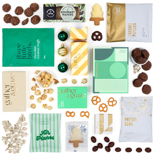 Spread joy this season with The Merry and Bright, a festive gift box brimming with sweet and savoury delights. From Christmas chocolates, cookies, and popcorn to wafers, pretzels, and gingerbread, this hamper has a little something for everyone. Perfect for sharing or gifting, it’s a cheerful way to celebrate the holiday season with treats that shine as bright as Christmas itself.