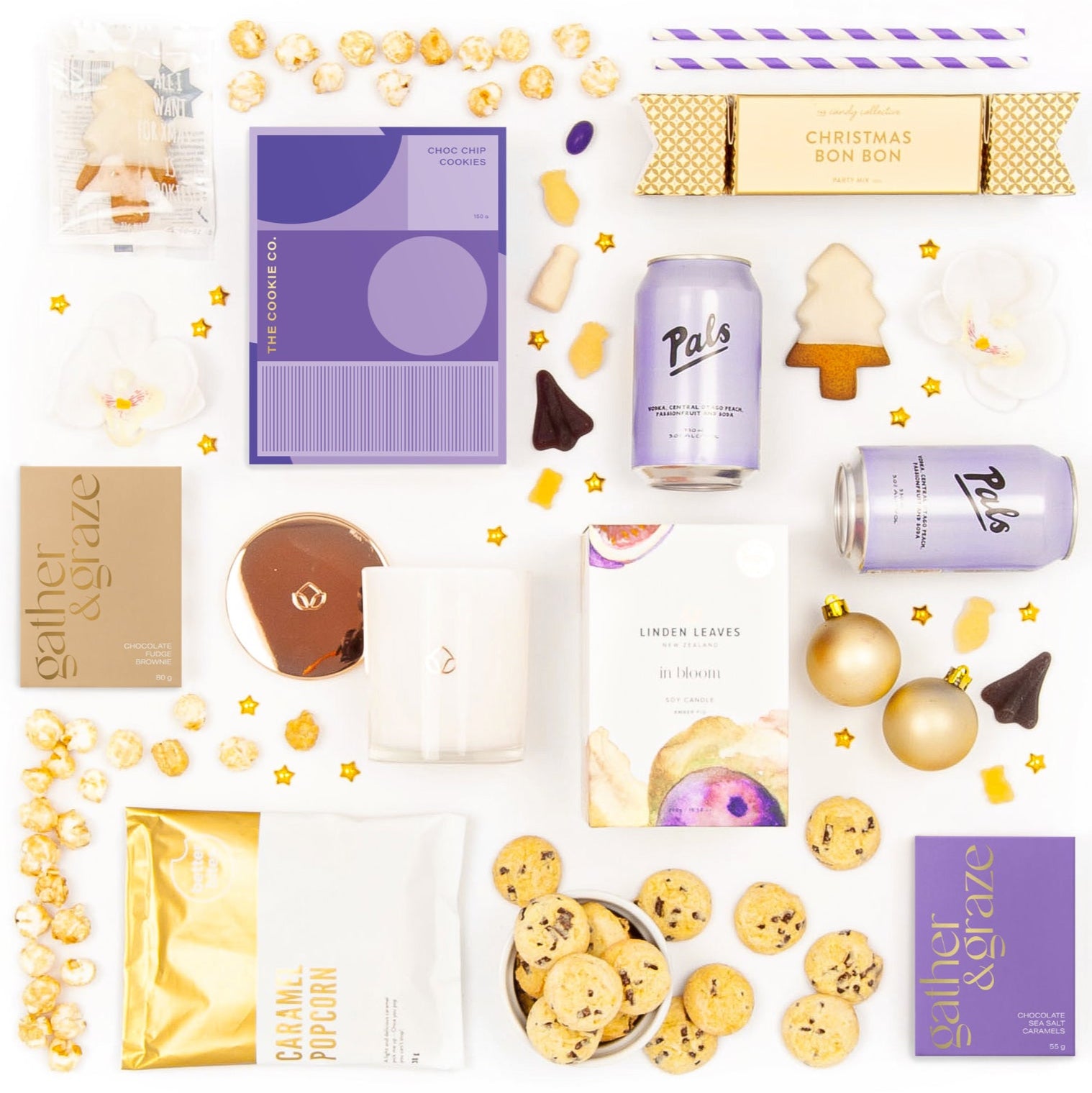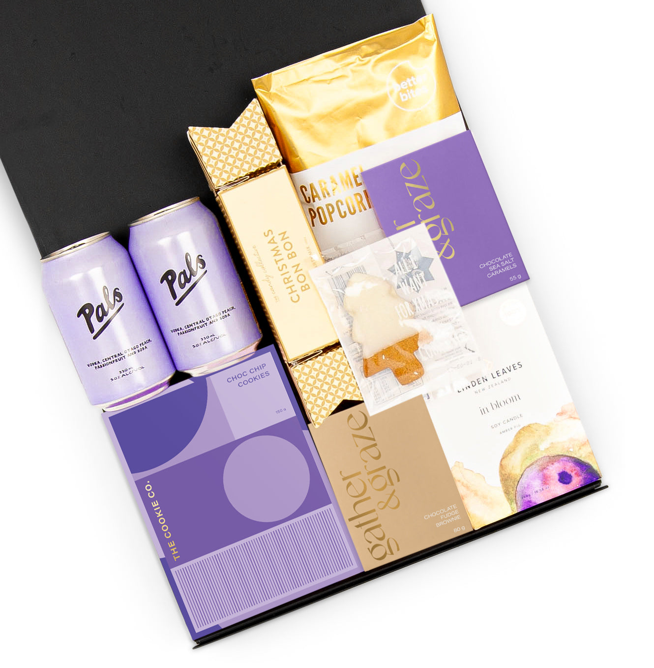 Celebrate Christmas the Kiwi way with The Christmas Scents, a gift box that captures the essence of summer festivities. A beautiful Linden Leaves Amber Fig soy candle brings a touch of luxury to the home, while crisp Pals drinks and light, festive treats are perfect for sunny afternoons and seasonal celebrations. With artisan chocolate, cookies, brownie, and a hint of gingerbread, this box blends indulgence with the relaxed spirit of a New Zealand Christmas.