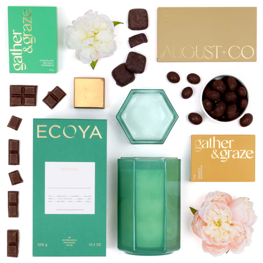 Timeless and beautifully designed, The ECOYA Keepsake is a truly special gift for those who appreciate elegance and indulgence. Centered around the luxurious ECOYA Keepsake Candle, this collection combines ambient fragrance with exquisite gourmet treats.