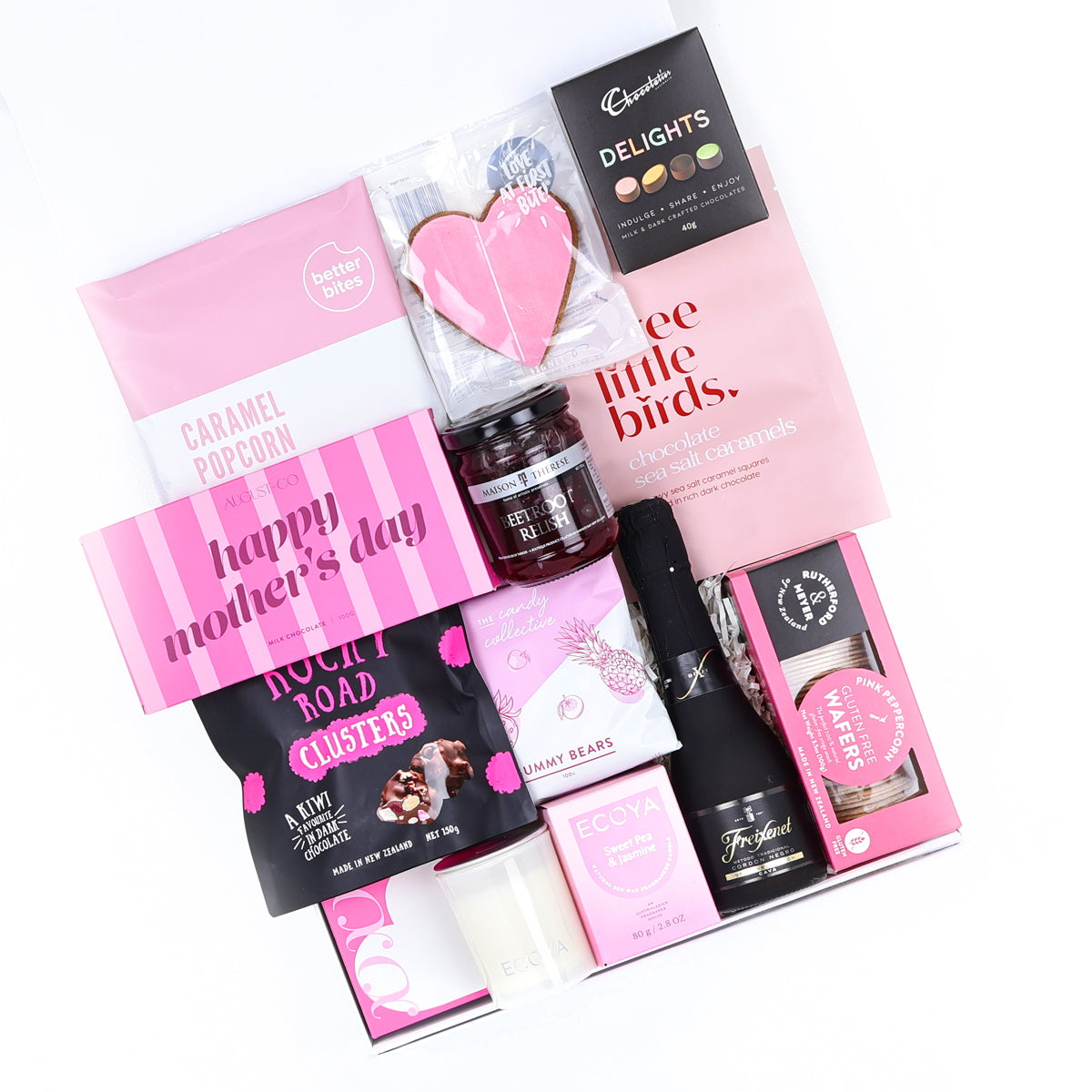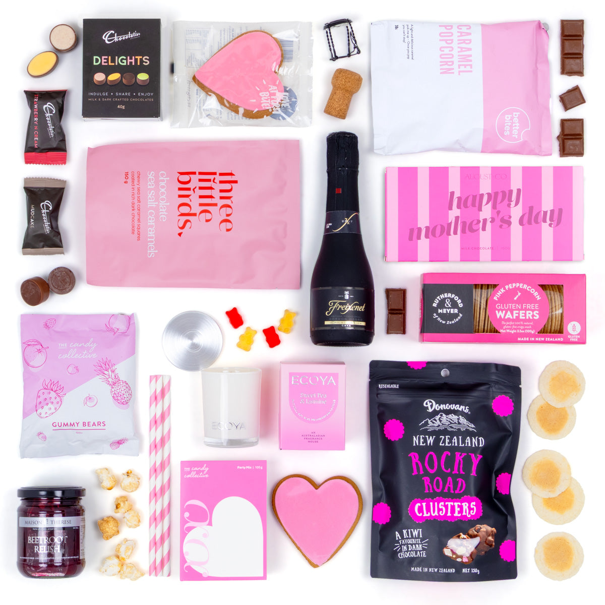 Click below to add the Mother's Day Bundle to this gift box and support The Breast Cancer Foundation NZ. The bundle includes a Happy Mother's Day Card, Happy Mother's Day Printed Ribbon & 5 x Chocolate Hearts.
