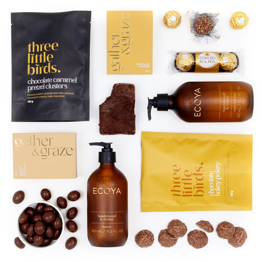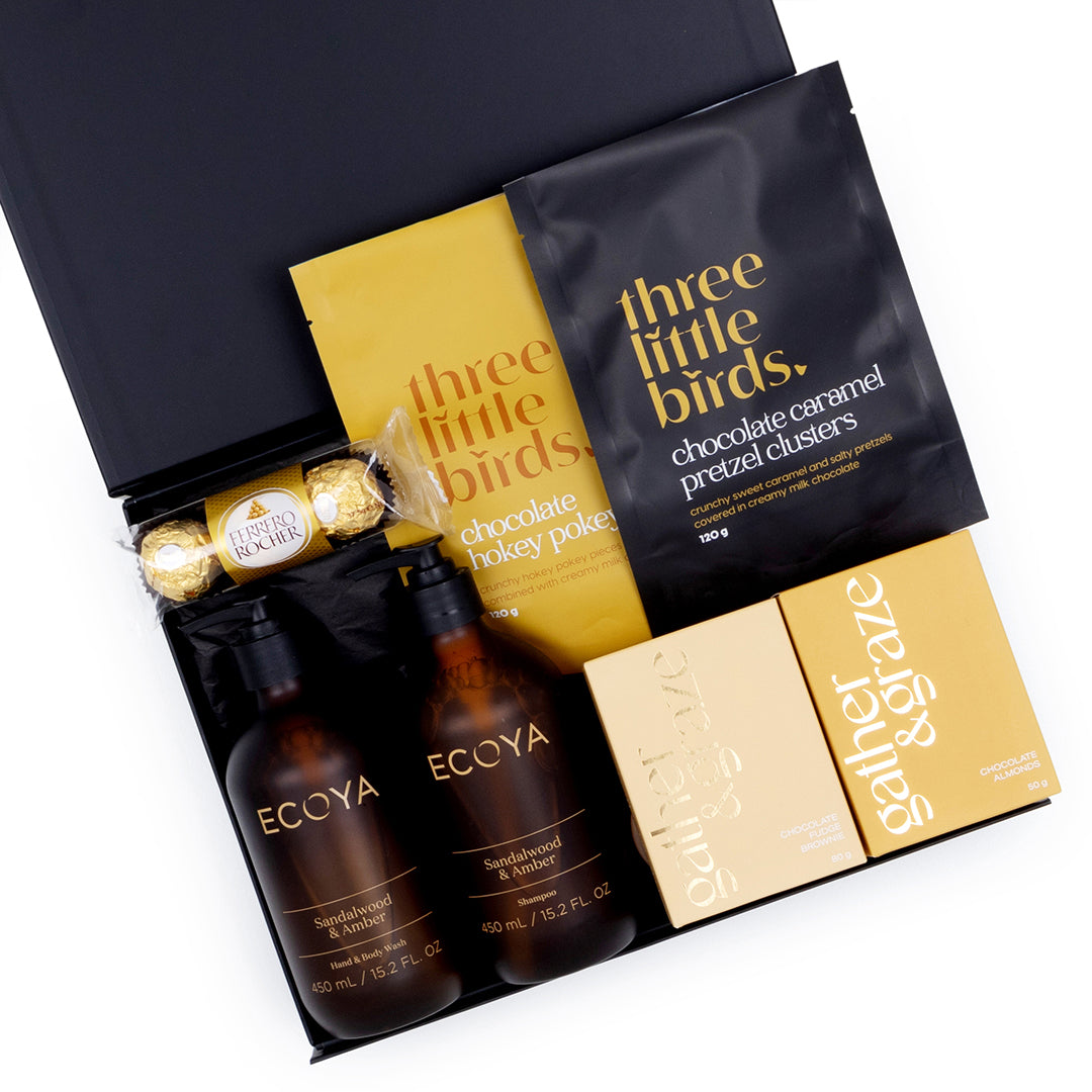 A thoughtful mix of luxury self-care and indulgent treats, this gift box is designed to pamper and delight. With ECOYA’s Sandalwood & Amber body essentials paired with premium chocolates and sweet nibbles, it’s perfect for spoiling someone special, celebrating milestones, or sending a heartfelt thank you.