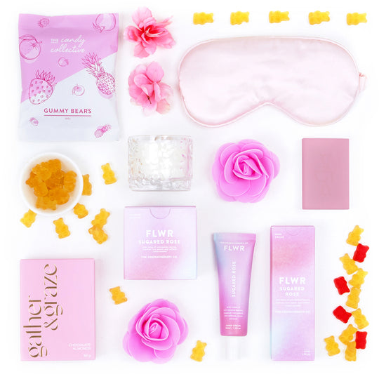 Delicate, dreamy, and oh-so-pretty, The Rosy Relaxation gift box is your go-to for moments of calm and indulgence. With sugared rose-scented treats, luxe self-care items, and a pop of pink sweetness, this limited edition box is perfect for birthdays, bridal parties, or a thoughtful pick-me-up.