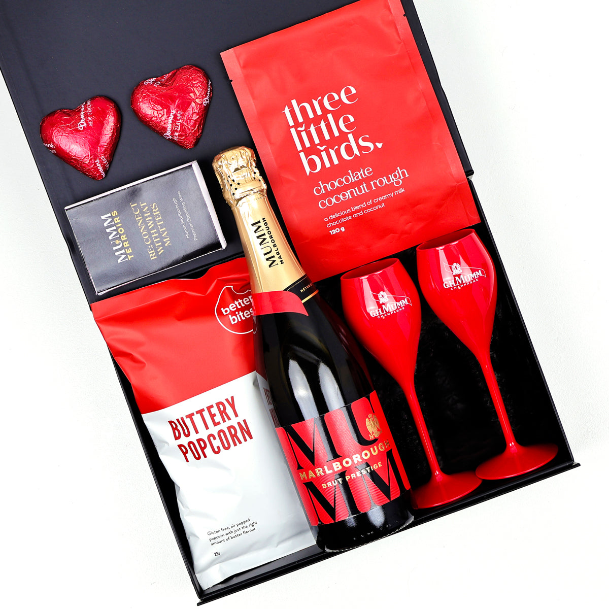 Products are presented in our signature modern packaging - custom-made black gift boxes finished with beautiful ribbon to form a stylish and contemporary gift (with no cane baskets or cellophane in sight).